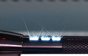 Anodized flashlight mid mark. High speed laser marking machines use galvo heads to rapidly manipulate beam movement.